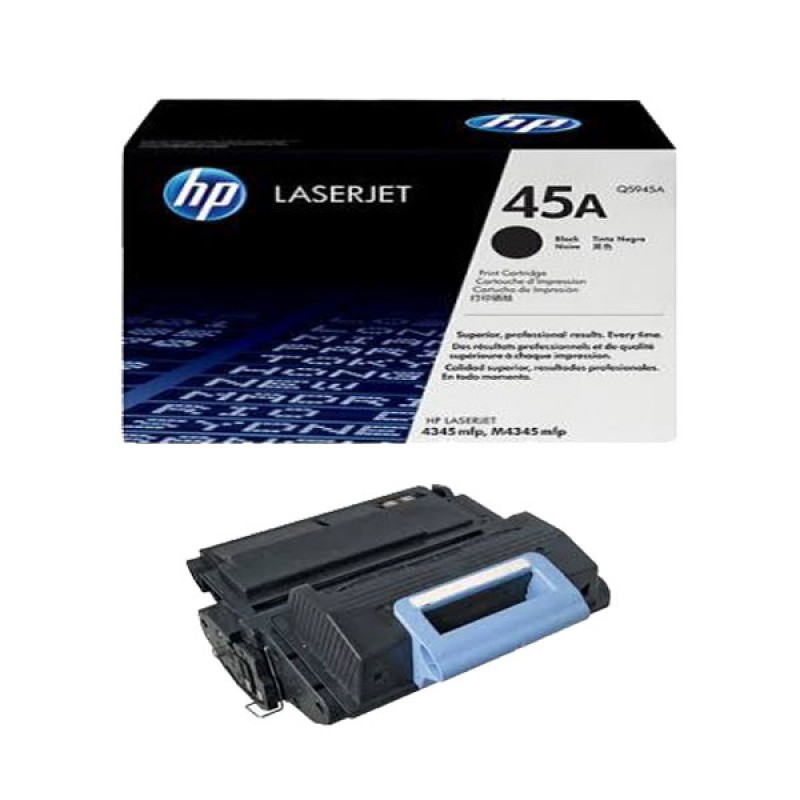 کارتریج تونر مشکی اچ پی HP 45A با تمامی سری دستگاه های چند کاره HP LaserJet 4345 سازگار است. این کارتریج می تواند تا 18000 برگ کاغذ را چاپ کرده و پس از آن دوباره شارژ شود. کد فنی آن Q5945A بوده و با نام عمومی 45A است. کارتریج تونر لیزری در چاپگر های لیزری استفاده می شود این تونر ها با رنگ های آبی، زرد، قرمز و مشکی تولید می شوند.